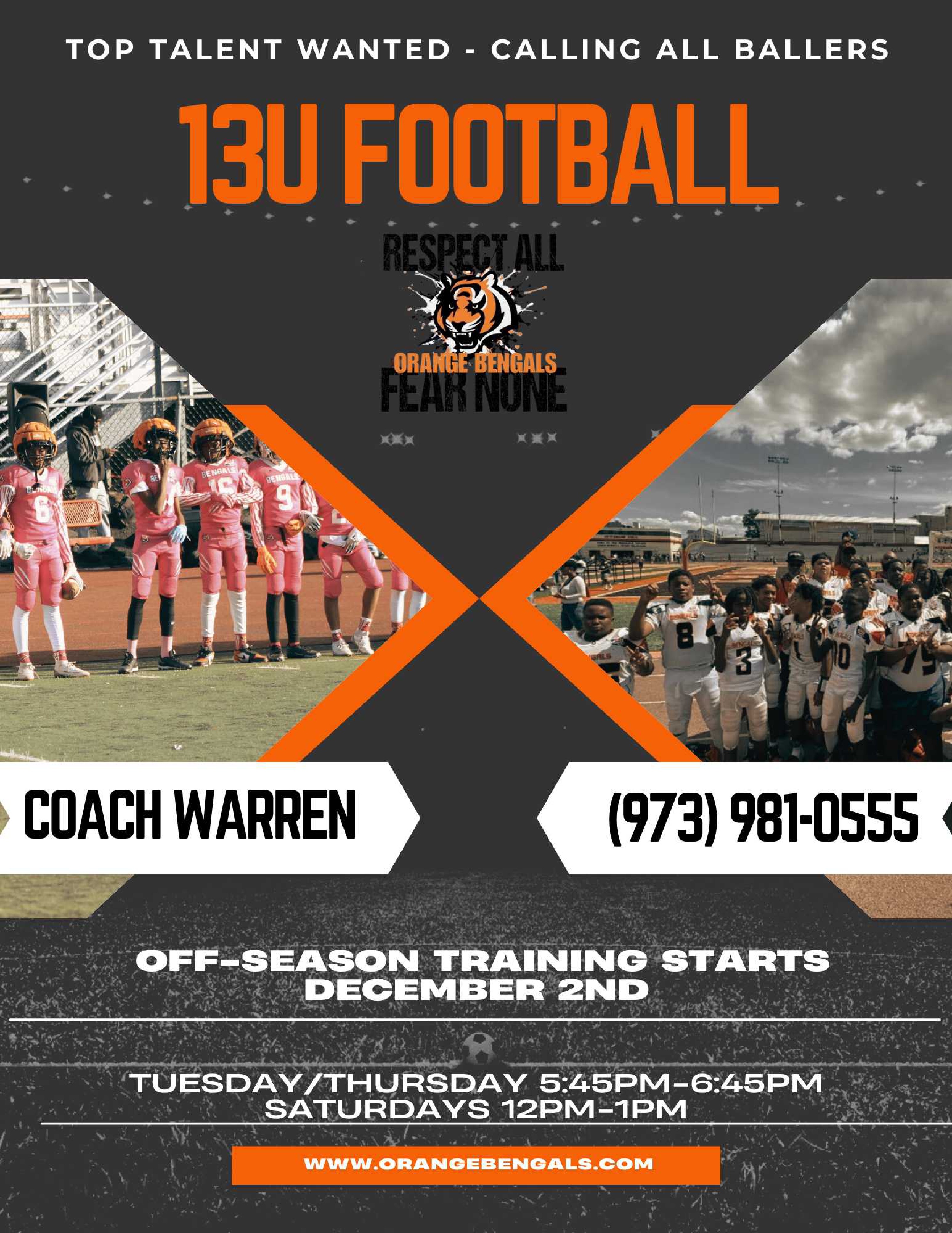 The Orange Bengals welcomes new athletes to join their football team!
